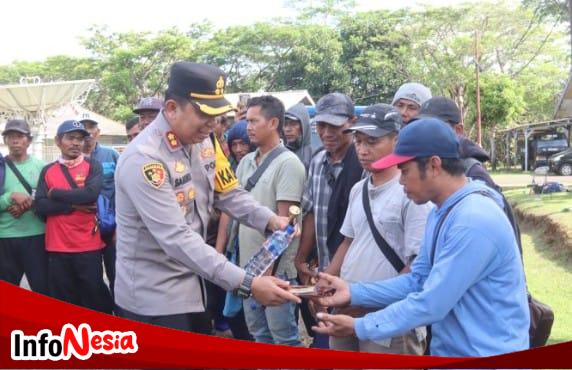 Kapolres Sukabumi Peduli Berikan Bantuan Makanan Ringan dan Minuman Kepada Warga yang Terjebak Badai Ombak.
