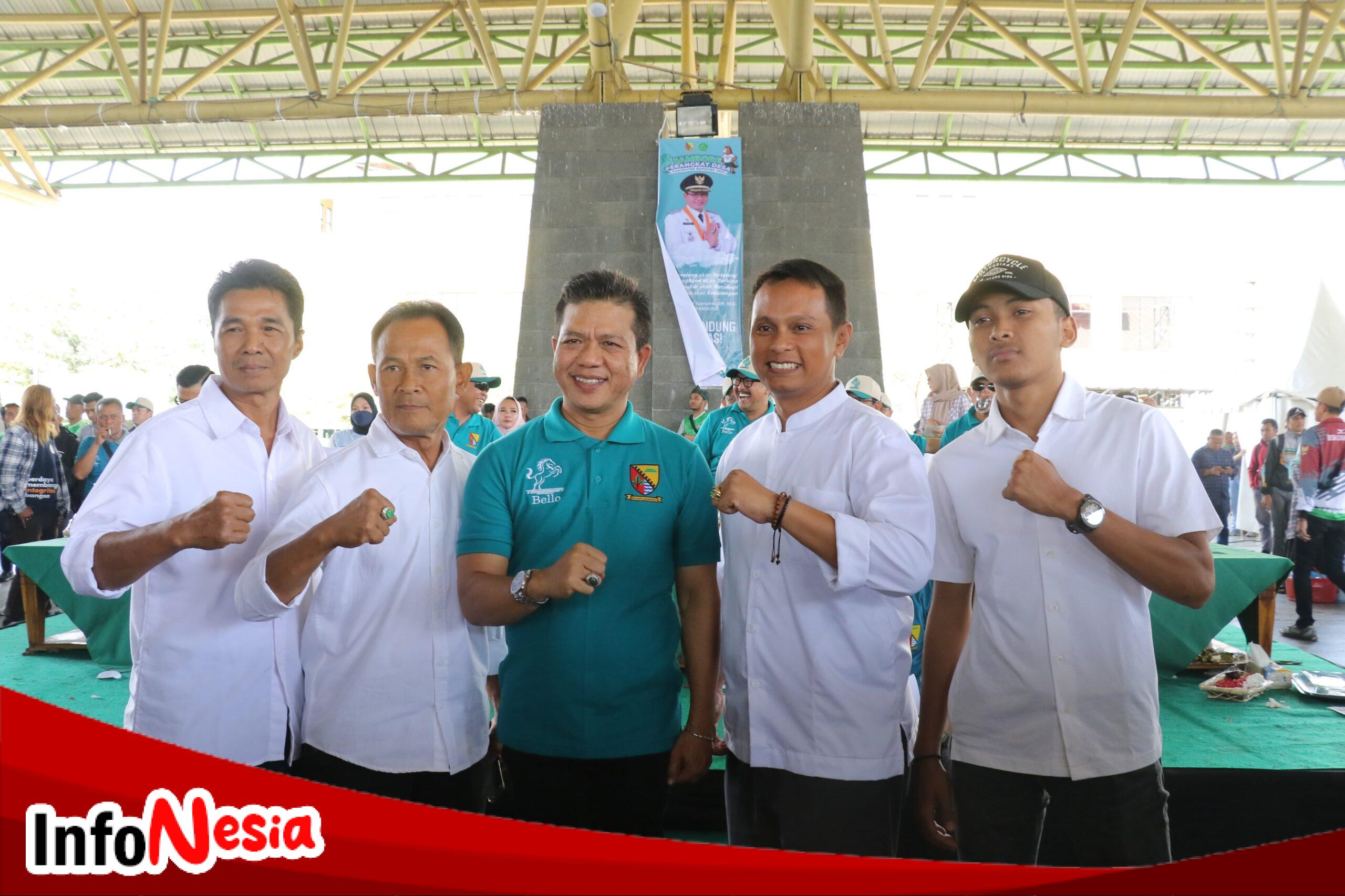 Bupati Bandung H Dadang Supriatna Sambangi Tri Rahmanto Tokoh Masyarakat Kabupaten Bandung Saat Jambore Perangkat Desa