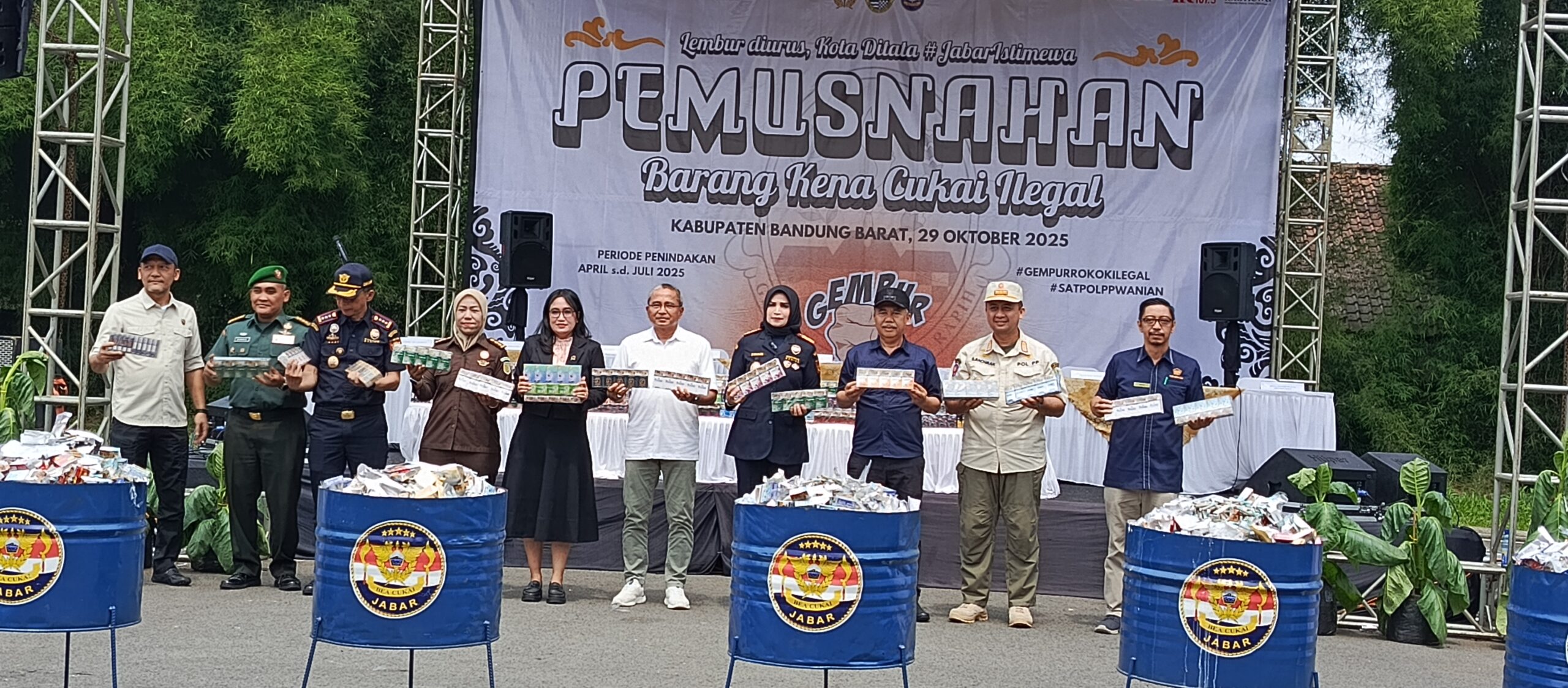 Bandung Barat|InfoNesia.me // Direktorat Jenderal Bea dan Cukai (DJBC) Jawa Barat menunjukkan komitmen kuat dalam memerangi peredaran rokok ilegal. Pada Selasa (29/10/2025), Bea Cukai Jawa Barat bersama Pemerintah Provinsi Jawa Barat kembali menggelar pemusnahan besar-besaran Barang Milik Negara (BMN) hasil penindakan, berupa 6,8 juta batang rokok ilegal dan berbagai barang kena cukai ilegal lainnya.