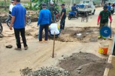 Antusias Anggota Prima Bergotong Royong Perbaiki Jalan Rusak dan Berlobang di Sukabirus.