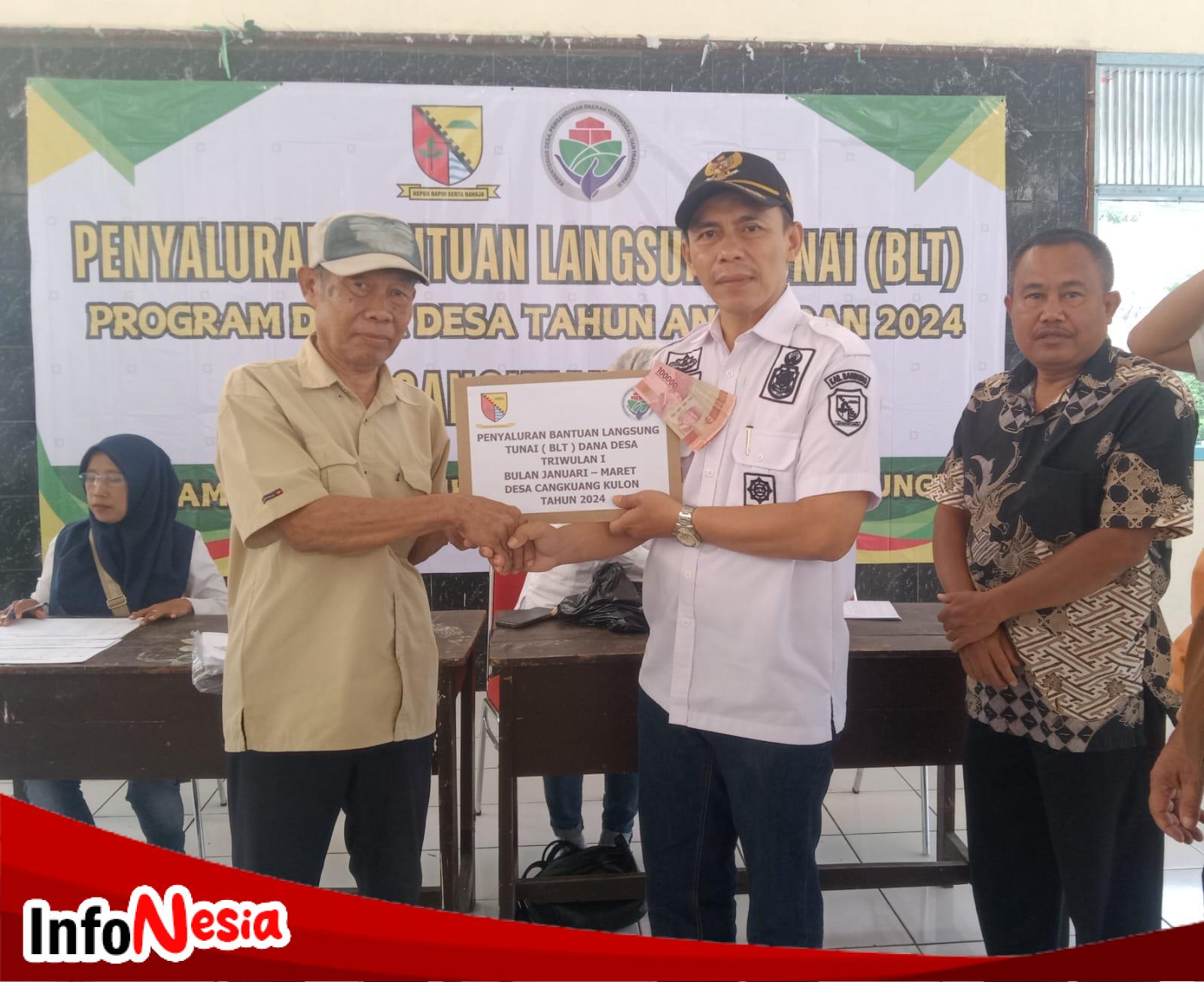Pembagian BLT Di Realisasikan PJ Kepala Desa Agus Ali SE di Aula Desa Cangkuang kulon Kecamatan Dayeuhkolot.