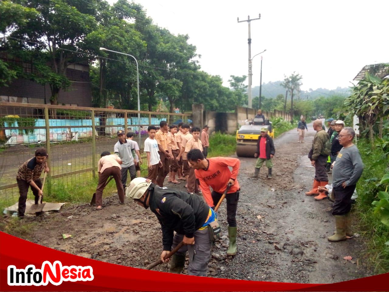 Kerja Bakti Penambalan Lubang Di Jalan Baruajak Desa Lembang