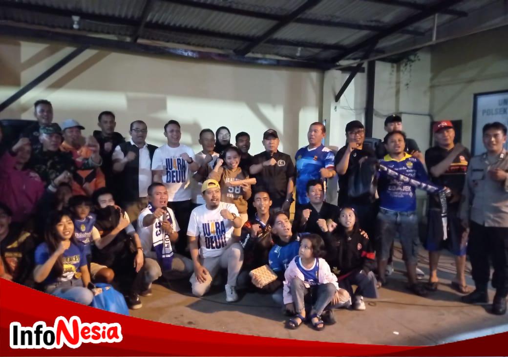 PJ Kades Cangkul Agus Ali SE, Hadiri Nobar Persib Bandung Vs Barito Putra Bersama Bobotoh di Halaman Polsek Dayeuhkolot.