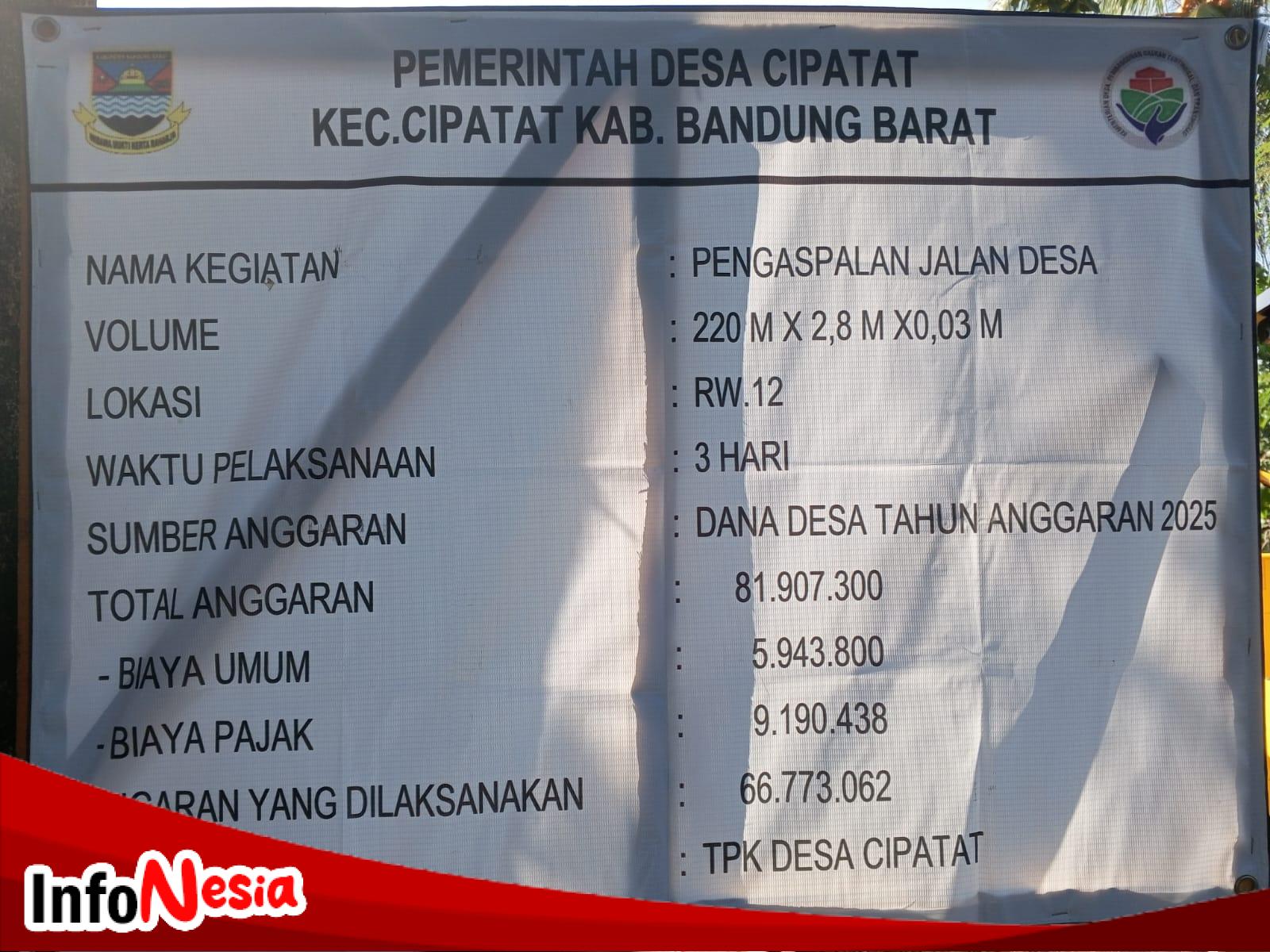 Pelaksanaan Pengaspalan Jalan Desa Cipatat Mengunakan Dana Desa Tahun 2025