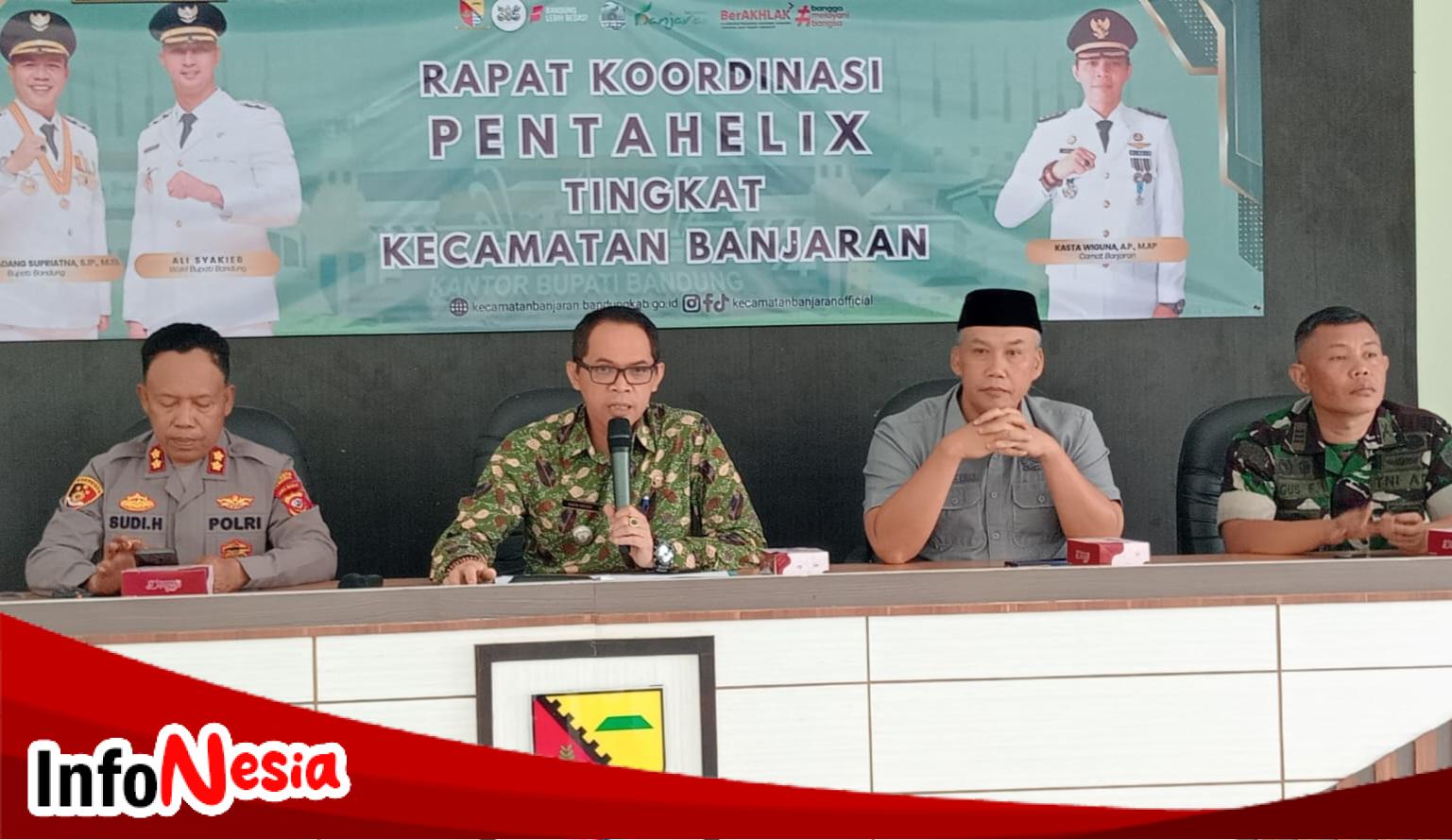 Kab.Bandung –InfoNesia.me// Dalam upaya penanganan banjir di wilayah Banjaran, Kabupaten Bandung, Banjaran menggelar rapat kordinasi memperkuat melalui sinergi antar unsur pentahelix. Hal ini diwujudkan dalam rapat koordinasi yang berlangsung di Aula Kantor Kecamatan Banjaran, Kabupaten Bandung. pada Kamis (23/04/2025).