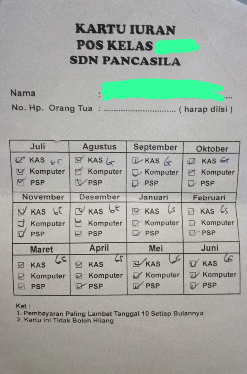 Namun, temuan di lapangan menunjukkan bahwa kartu pembayaran lama masih digunakan oleh pos murid kelas untuk melakukan penagihan. Hal ini tentu menimbulkan tanda tanya besar mengenai pengawasan pihak sekolah terhadap komite maupun yayasan.