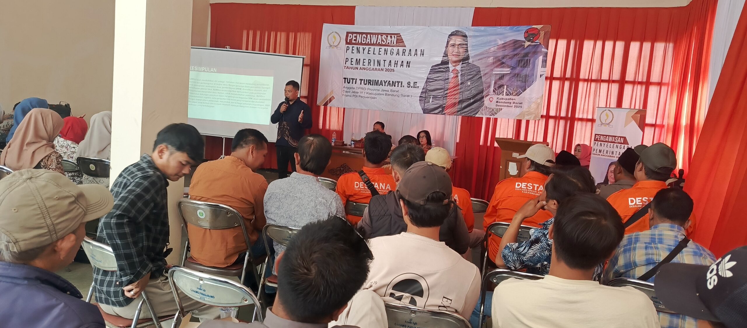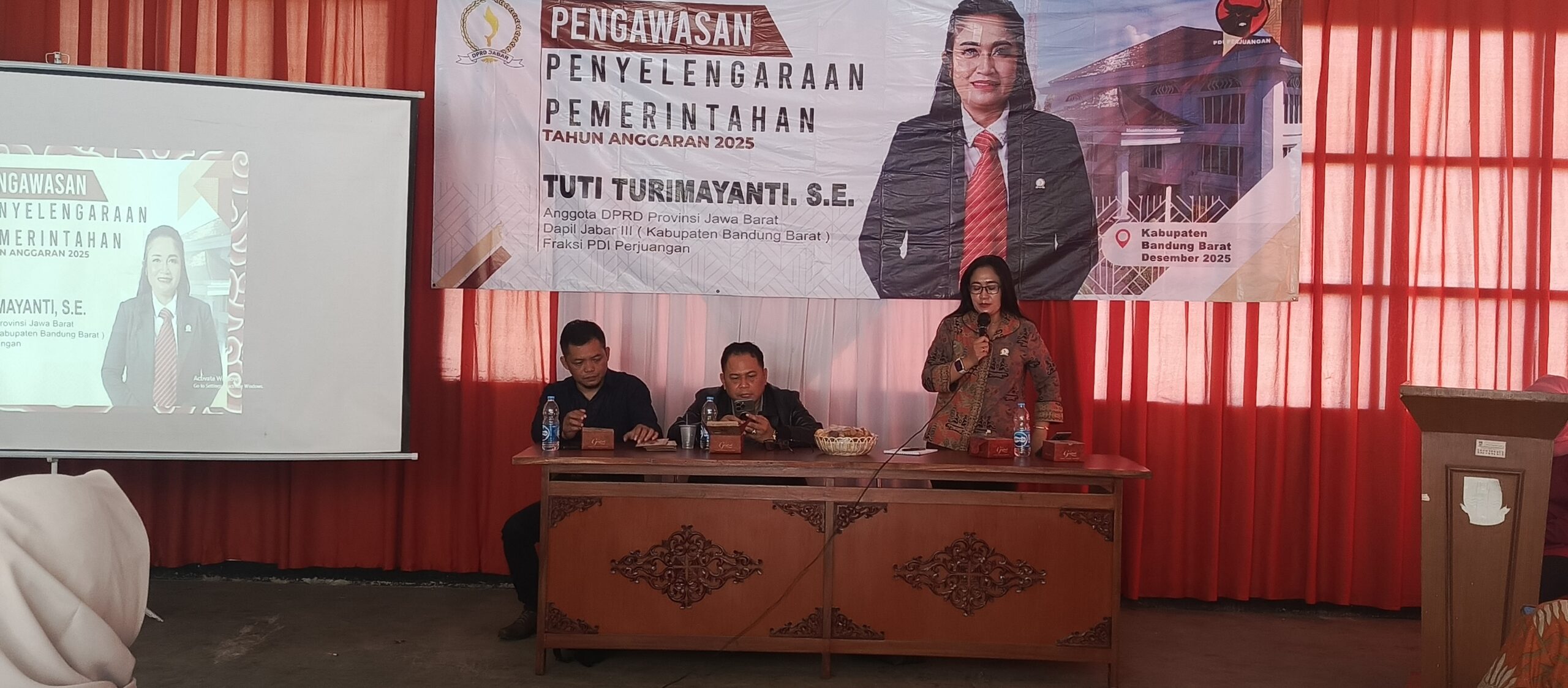Bandung Barat | InfoNesia.me // Anggota DPRD Provinsi Jawa Barat Daerah Pemilihan Jabar III (Kabupaten Bandung Barat) dari Fraksi PDI Perjuangan, Tuti Turmayanti, S.SE, melaksanakan kegiatan Pengawasan Penyelenggaraan Pemerintahan Tahun Anggaran 2025 yang dipusatkan di Desa Mekarsari, Kecamatan Ngamprah, Kabupaten Bandung Barat, pada Jumat, 12 Desember 2025.